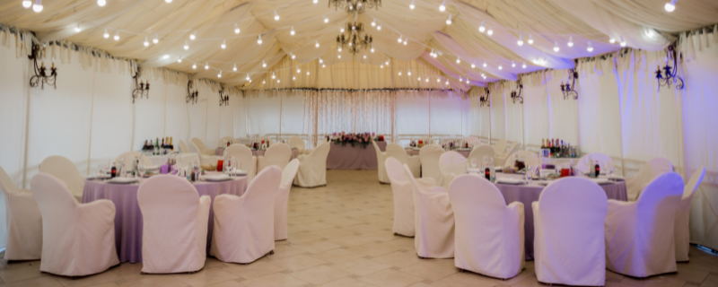 - Éclairage d'ambiance créatif : Guirlandes lumineuses suspendues, projecteurs colorés, éclairage indirect avec variation d'intensité. Ces effets transforment votre tente ordinaire en décor féerique et créent l'ambiance de votre événement.