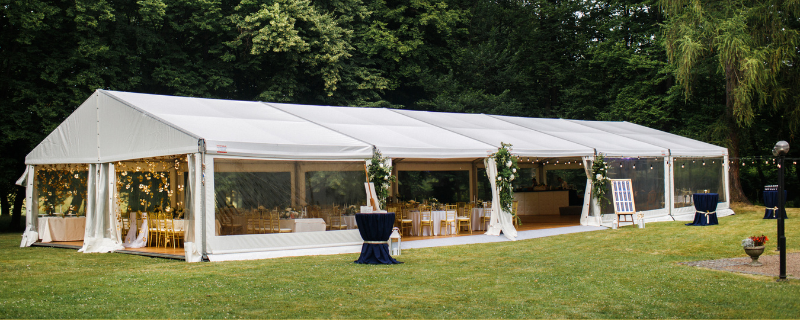 Le mariage représente l'événement par excellence où le choix de l'abri revêt une importance capitale. Pour une réception de 100 invités ou plus, le chapiteau s'impose comme la solution la plus adaptée. Il offre l'espace nécessaire pour installer les tables de réception, la piste de danse, le buffet et tous les éléments qui feront de votre journée un moment inoubliable. La tradition privilégie les chapiteaux blancs qui apportent élégance et luminosité, créant une atmosphère festive et raffinée. Vous pouvez néanmoins opter pour d'autres coloris si vous souhaitez personnaliser votre décoration selon votre thème.