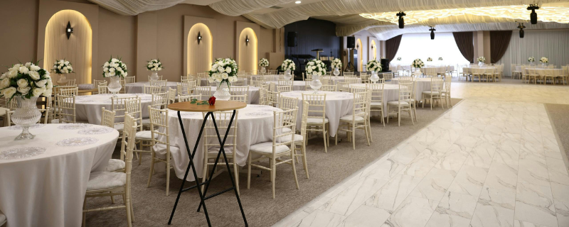 Par exemple, si vous organisez un dîner dansant pour 30 personnes, il vous faudra au minimum 60 m² : 45 m² pour le dîner assis et 15 m² supplémentaires pour l'espace danse ou animation.
